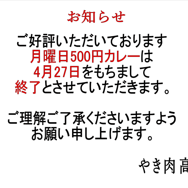 ランチメニューは、黒毛和牛焼き肉を中心としたメニュー構成ですが、特製カレーやビビンバなども用意しております。